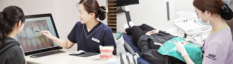| step 2검진 결과 브리핑 | 개인 맞춤형 자료를 이용하여 현재 구강 내 세균, 충치 활성도, 잇몸 건강지수 등의 구강 건강 검사 결과를 브리핑하며, 치아와 잇몸의 건강증진을 위한 관련 지식과 예방 관리에 대해 상세히 설명드립니다.