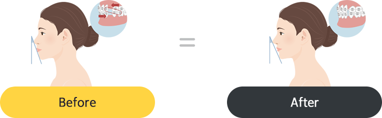 치아교정을 통해 뻗어 나온 앞니를 뒤로 당겨 넣는 치료입니다. 나온 입을 넣기 위해서는, 송곳니 뒤쪽에 있는 작은 어금니를 발치하고 그 자리를 이용해 앞니를 당기게 됩니다.