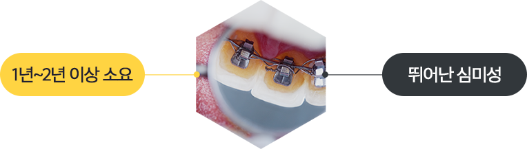 대부분의 교정 치료가 1년 ~2년 이상 소요되는 경우가 많습니다. 그래서 많은 직장인들이 겉으로 보이는 장치로 인해 교정을 망설이게 되는데, 설측 교정 장치의 경우 장치가 치아 안쪽 면에 부착되기 때문에 겉에서는 눈에 잘 띄지 않고, 치료 기간이나 효과도 밖으로 하는 치료와 큰 차이가 없습니다.
