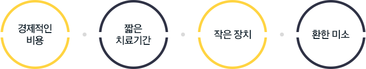 치아에 브래킷을 부착하지 않고, 투명한 아크릴 필름을 끼워 치아를 이동시키는 방법을 말하며, 투명하여 잘 보이지 않고 착탈식이라 필요시에 제거가 가능하며, 치과에서 소모되는 시간이 적고 장치로 인한 불편한 자극이 없습니다. 단, 악당 2mm 이내 정도의 공간 부족이나 틈이 벌어진 경우, 또는 치아 이동 거리가 작은 비교적 간단한 증례에 국한되어 사용되는 장치입니다.