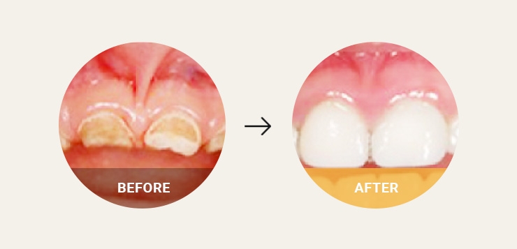 어린이의 치아(유치)는 영구치보다 유기질을 더 많이 함유하고 있어서, 충치가 생기면 빠르게 확산되는 경향이 있기 때문에 충치가 발견되면 즉시 치료를 해주어야 합니다.