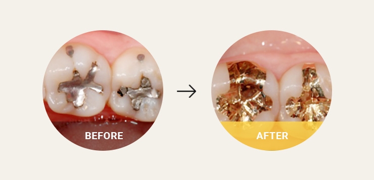 생체친화적인 치과용 금을 사용해 잘 깨지지 않고 씹는 힘에