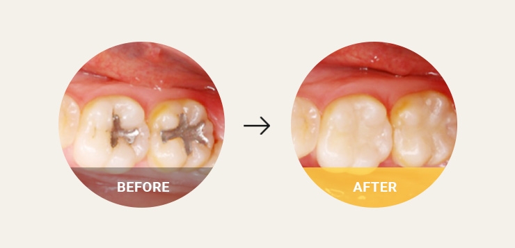또한, 충치의 재발률이 낮으며 치과용 재료(레진)로